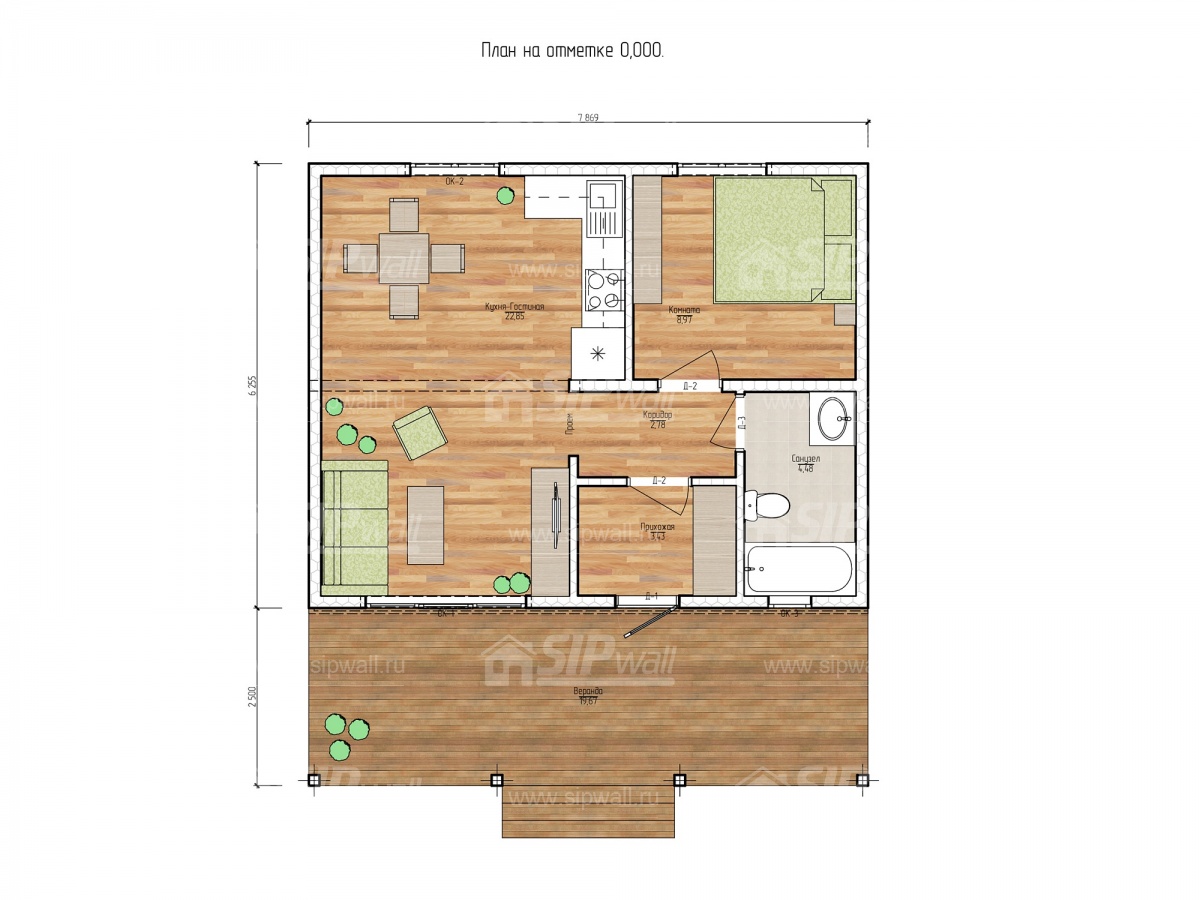 | Трехслойная СИП панель SIPwall 124 мм (OSB-3 12 мм, Россия, фасадный самозатухающий пенополистирол ППС 14 100 мм, Россия), вшитый конструктивный пиломатериал камерной сушки, строганный, обработанный огнебиозащитным составом «Wood Shield» в заводских условиях. | X | ||||||