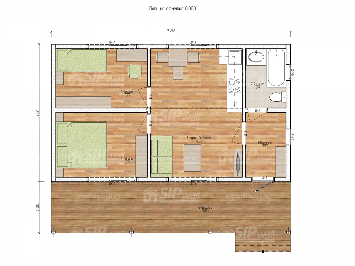 | Трехслойная СИП панель SIPwall 124 мм (OSB-3 12 мм, Россия, фасадный самозатухающий пенополистирол ППС 14 100 мм, Россия), вшитый конструктивный пиломатериал камерной сушки, строганный, обработанный огнебиозащитным составом «Wood Shield» в заводских условиях. | X | ||||||