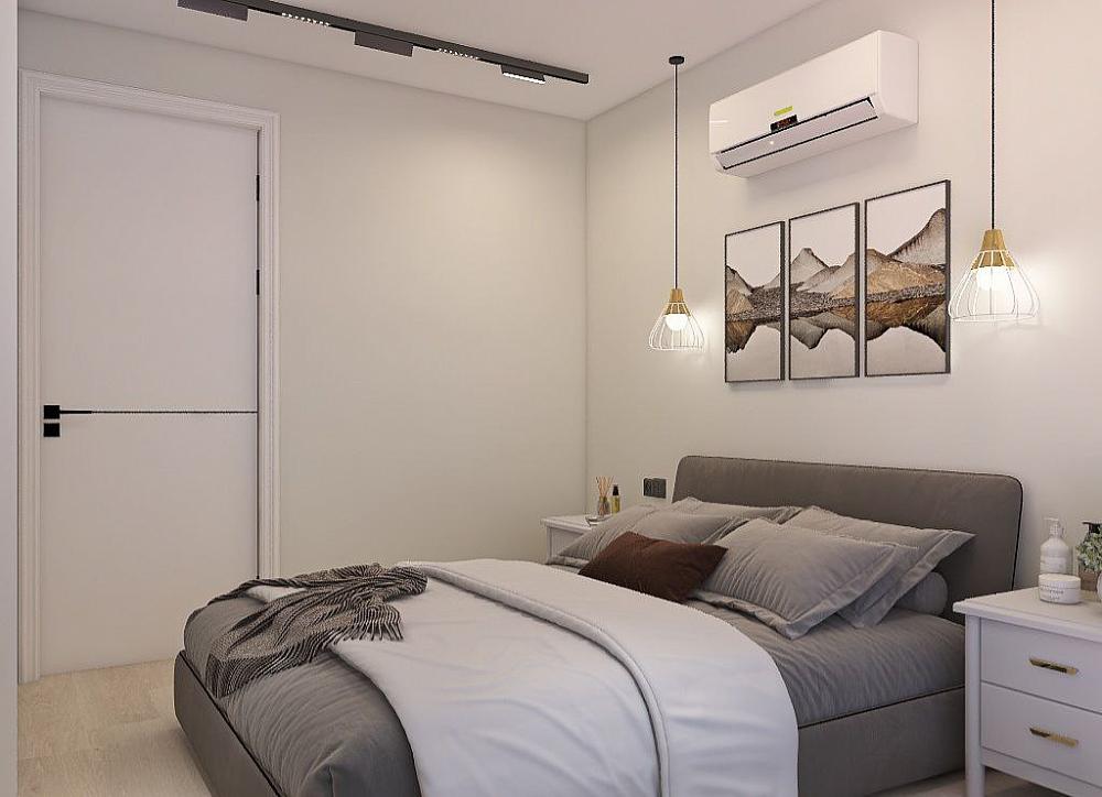 • Напольное покрытие — кварцвинил с текстурой дерева.