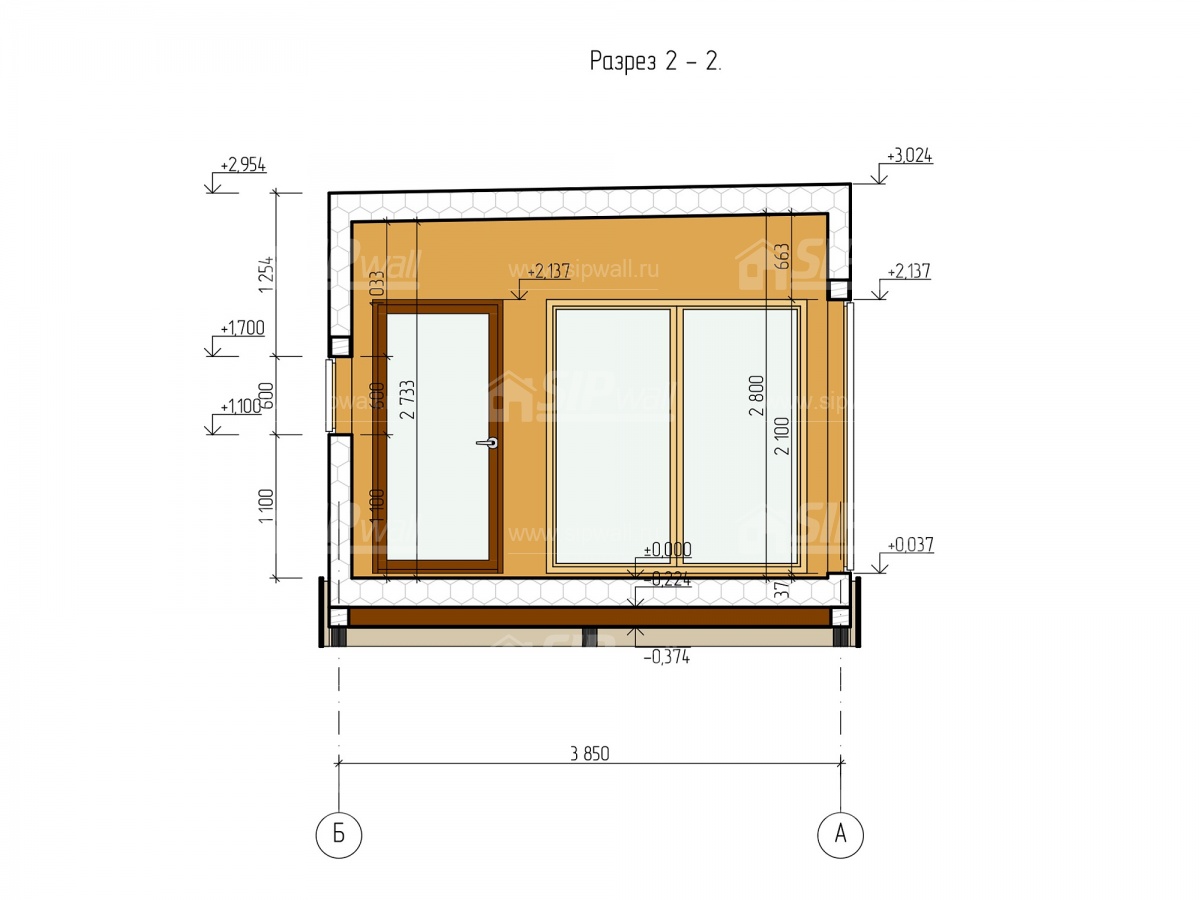 | Трехслойная усиленная СИП панель SIPwall 224У/174У мм (OSB-3 12 мм, Россия, фасадный самозатухающий пенополистирол ППС 14 200/150 мм, Россия), вшитый конструктивный пиломатериал камерной сушки, строганный, обработанный огнебиозащитным составом «Wood Shield» в заводских условиях. | X | X | |||||