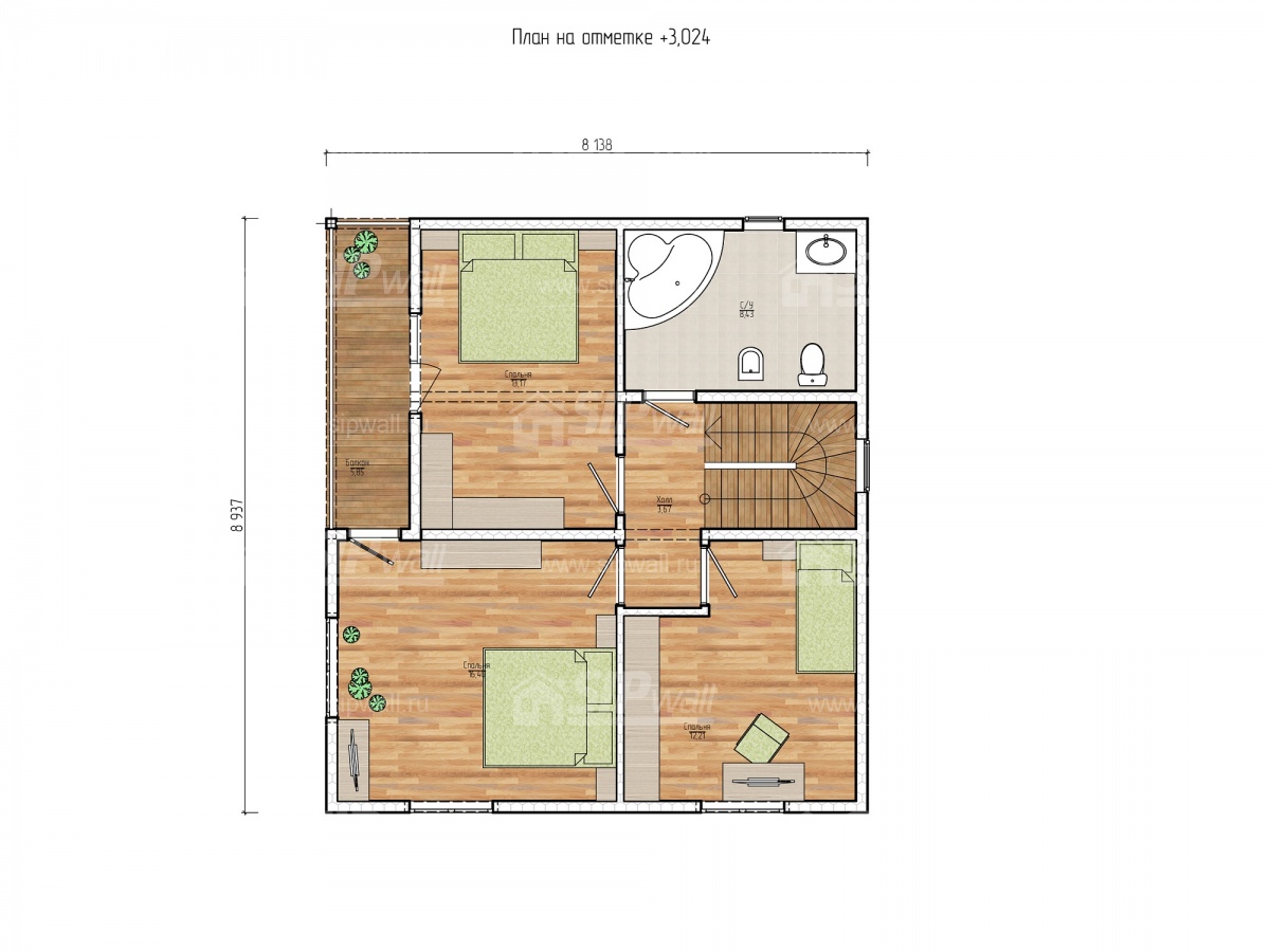 | Деревянные балки с покрытием чернового пола OSB-3 толщиной 22 мм (пиломатериал камерной сушки, строганный, обработанный огнебиозащитным составом «Wood Shield» в заводских условиях). | X | X | |||||