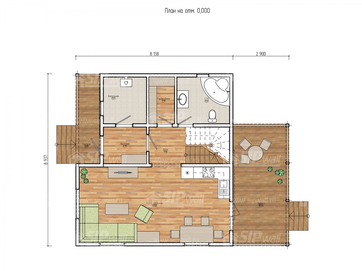 | Трехслойная СИП панель SIPwall 124 мм (OSB-3 12 мм, Россия, фасадный самозатухающий пенополистирол ППС 14 100 мм, Россия), вшитый конструктивный пиломатериал камерной сушки, строганный, обработанный огнебиозащитным составом «Wood Shield» в заводских условиях. | X | ||||||