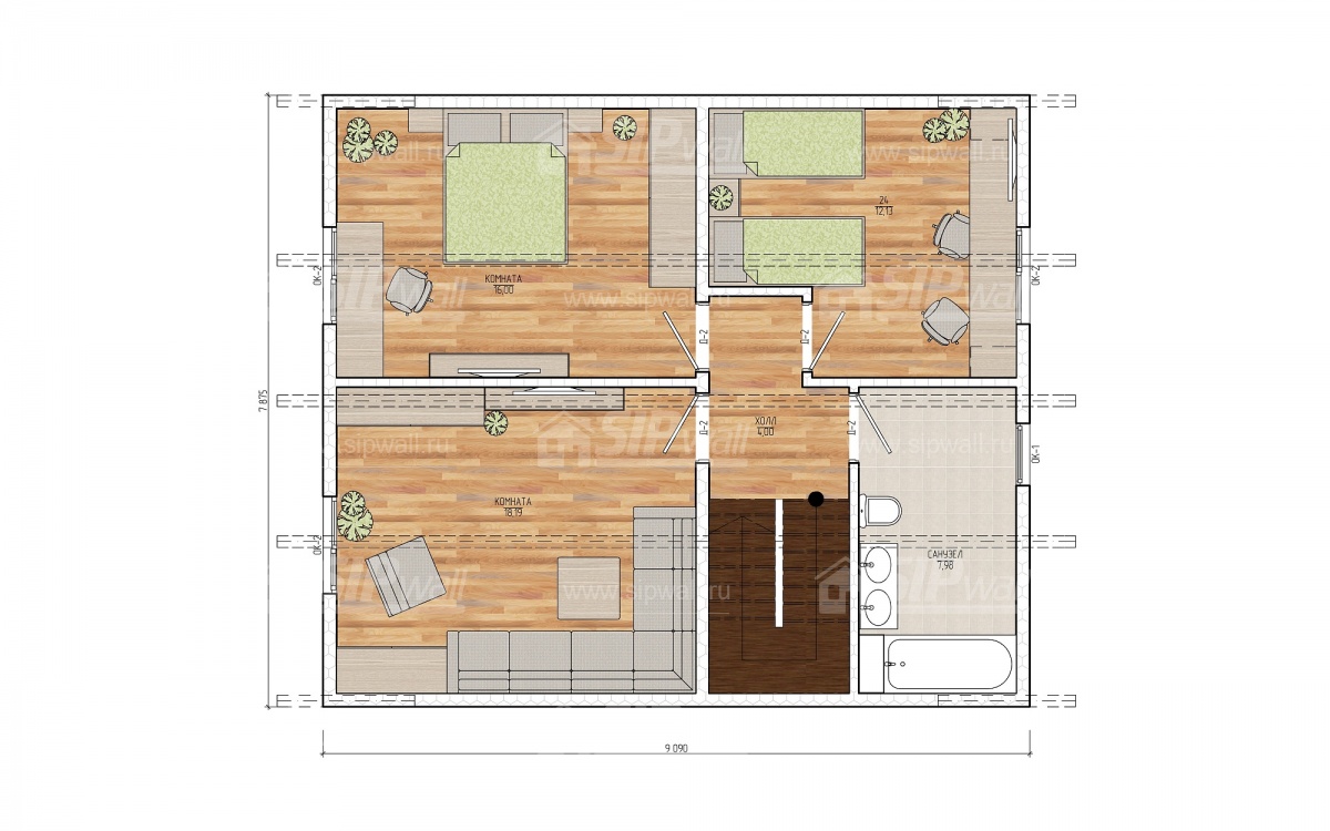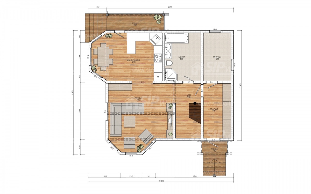 | Домокомплект изготавливается из трехслойных СИП панелей, произведенных по технологии SIPwall (ЭКОПАН) на собственном заводе, расположенном в г. Шуя, Ивановской области. При изготовлении домокомплекта панельно-каркасного дома используется только строганный пиломатериал камерной сушки, обработанный огнебиозащитным составом «Wood Shield» в заводских условиях. Все СИП панели домокомплекта изготовлены в соответствии с конструктивной проектной документацией, разработанной собственным проектным отдел компании SIPwall, и обрусованы сухим строганным пиломатериалом. На выходе с завода SIPwall домокомплект имеет 99%-ю готовность. | |||||||
