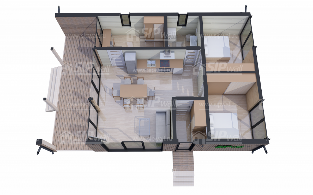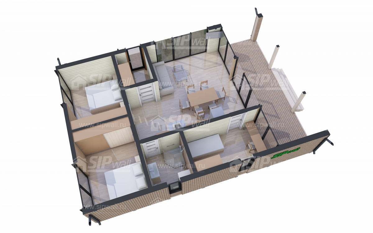 | Домокомплект изготавливается из трехслойных СИП панелей, произведенных по технологии SIPwall (ЭКОПАН) на собственном заводе, расположенном в г. Шуя, Ивановской области. При изготовлении домокомплекта панельно-каркасного дома используется только строганный пиломатериал камерной сушки, обработанный огнебиозащитным составом «Wood Shield» в заводских условиях. Все СИП панели домокомплекта изготовлены в соответствии с конструктивной проектной документацией, разработанной собственным проектным отдел компании SIPwall, и обрусованы сухим строганным пиломатериалом. На выходе с завода SIPwall домокомплект имеет 99%-ю готовность. | |||||||