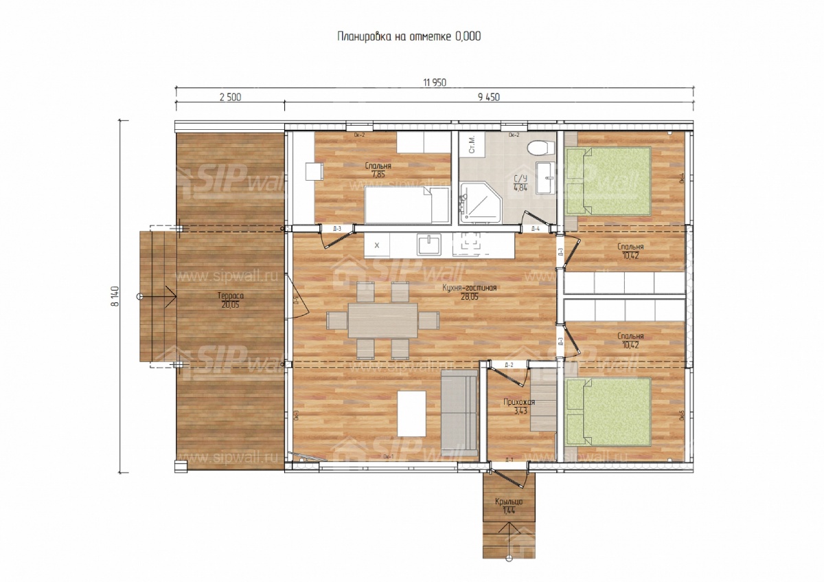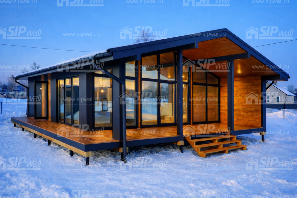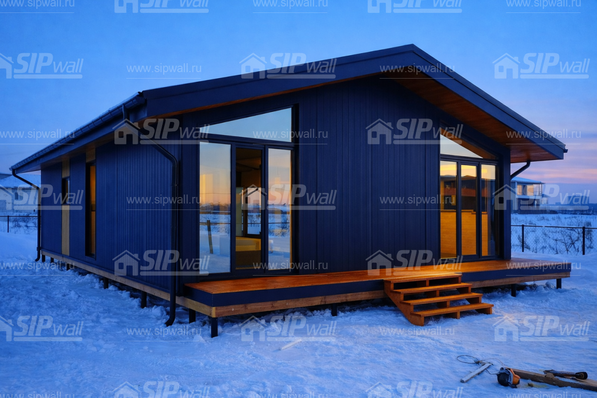 | Трехслойная СИП панель SIPwall 124 мм (OSB-3 12 мм, Россия, фасадный самозатухающий пенополистирол ППС 14 100 мм, Россия), вшитый конструктивный пиломатериал камерной сушки, строганный, обработанный огнебиозащитным составом «Wood Shield» в заводских условиях. | X | ||||||