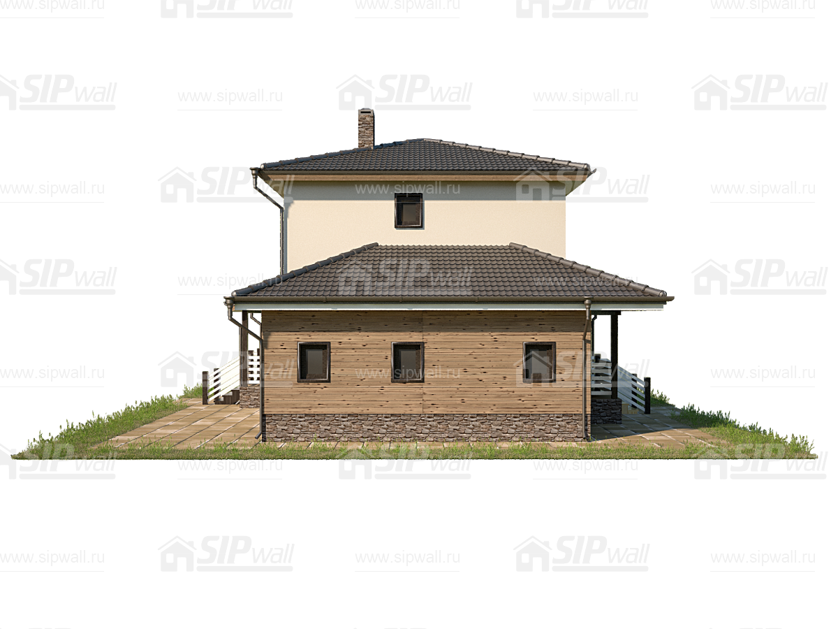 | Трехслойная СИП панель SIPwall 174 мм (OSB-3 12 мм, Россия, фасадный самозатухающий пенополистирол ППС 14 150 мм, Россия), вшитый конструктивный пиломатериал камерной сушки, строганный, обработанный огнебиозащитным составом «Wood Shield» в заводских условиях. | X | X | X | X | |||
