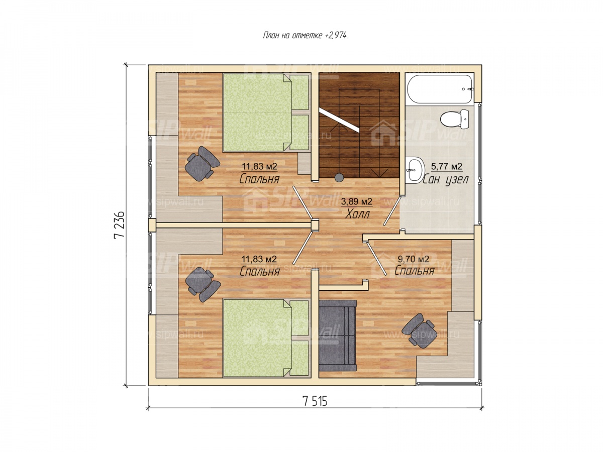 | Трехслойная СИП панель SIPwall 174 мм (OSB-3 12 мм, Россия, фасадный самозатухающий пенополистирол ППС 14 150 мм, Россия), вшитый конструктивный пиломатериал камерной сушки, строганный, обработанный огнебиозащитным составом «Wood Shield» в заводских условиях. | X | X | X | X | |||