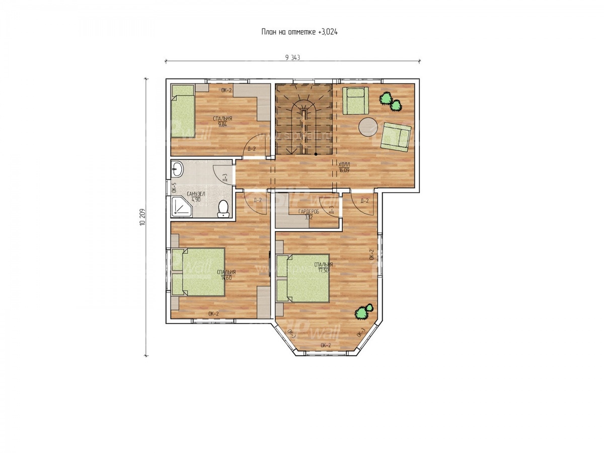 | Трехслойная СИП панель SIPwall 174 мм (OSB-3 12 мм, Россия, фасадный самозатухающий пенополистирол ППС 14 150 мм, Россия), вшитый конструктивный пиломатериал камерной сушки, строганный, обработанный огнебиозащитным составом «Wood Shield» в заводских условиях. | X | ||||||
