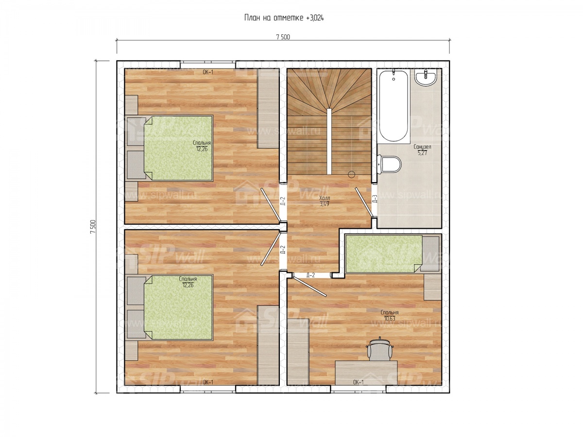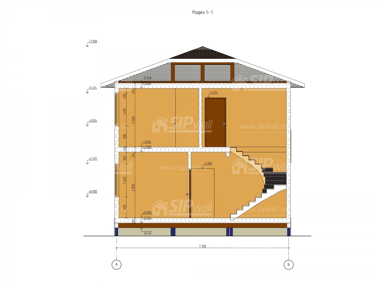 | Трехслойная СИП панель SIPwall 124 мм (OSB-3 12 мм, Россия, фасадный самозатухающий пенополистирол ППС 14 100 мм, Россия), вшитый конструктивный пиломатериал камерной сушки, строганный, обработанный огнебиозащитным составом «Wood Shield» в заводских условиях. | X | ||||||