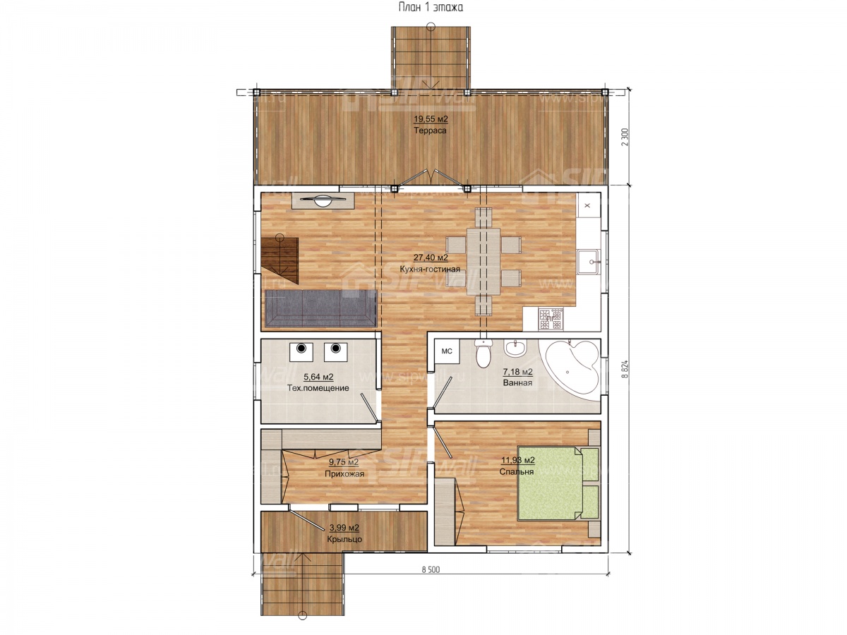 | Трехслойная СИП панель SIPwall 124 мм (OSB-3 12 мм, Россия, фасадный самозатухающий пенополистирол ППС 14 100 мм, Россия), вшитый конструктивный пиломатериал камерной сушки, строганный, обработанный огнебиозащитным составом «Wood Shield» в заводских условиях. | X | ||||||