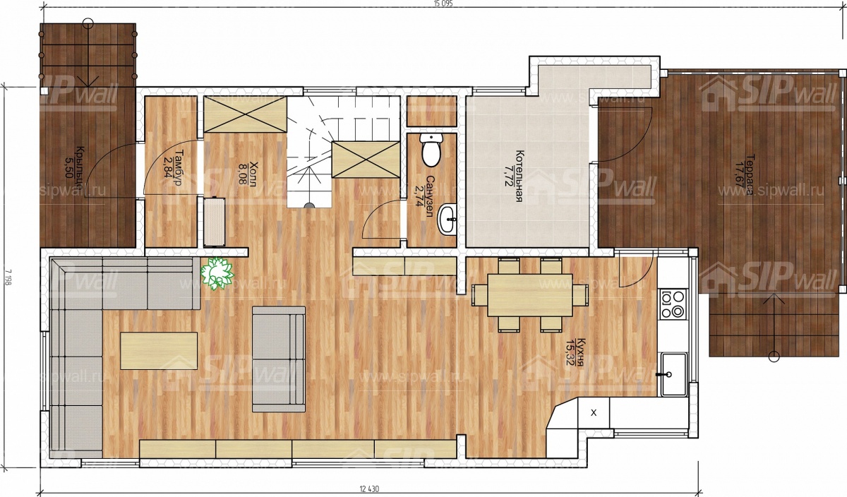 | Трехслойная СИП панель SIPwall 174 мм (OSB-3 12 мм, Россия, фасадный самозатухающий пенополистирол ППС 14 150 мм, Россия), вшитый конструктивный пиломатериал камерной сушки, строганный, обработанный огнебиозащитным составом «Wood Shield» в заводских условиях. | X | X | X | X | |||