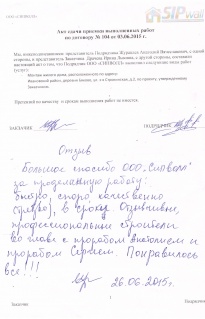 Большое спасибо компании СИПВОЛЛ за проделанную работу: быстро, скоро, качественно (трезво), в сроки. Отзывчивые, профессиональные строители во главе с прорабом Анатолием и прорабом Сергеем. Понравилось все!!!