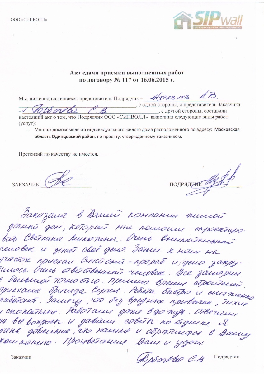 Заказала в Вашей компании жилой дачный дом, который мне помогли спроектировать Светлана Милютина. Очень внимательный человек и знает свое дело. Затем к Нам на участок приехал Анатолий прораб и дело закрутилось. Очень ответственный человек. Все замерял с большой точностью.