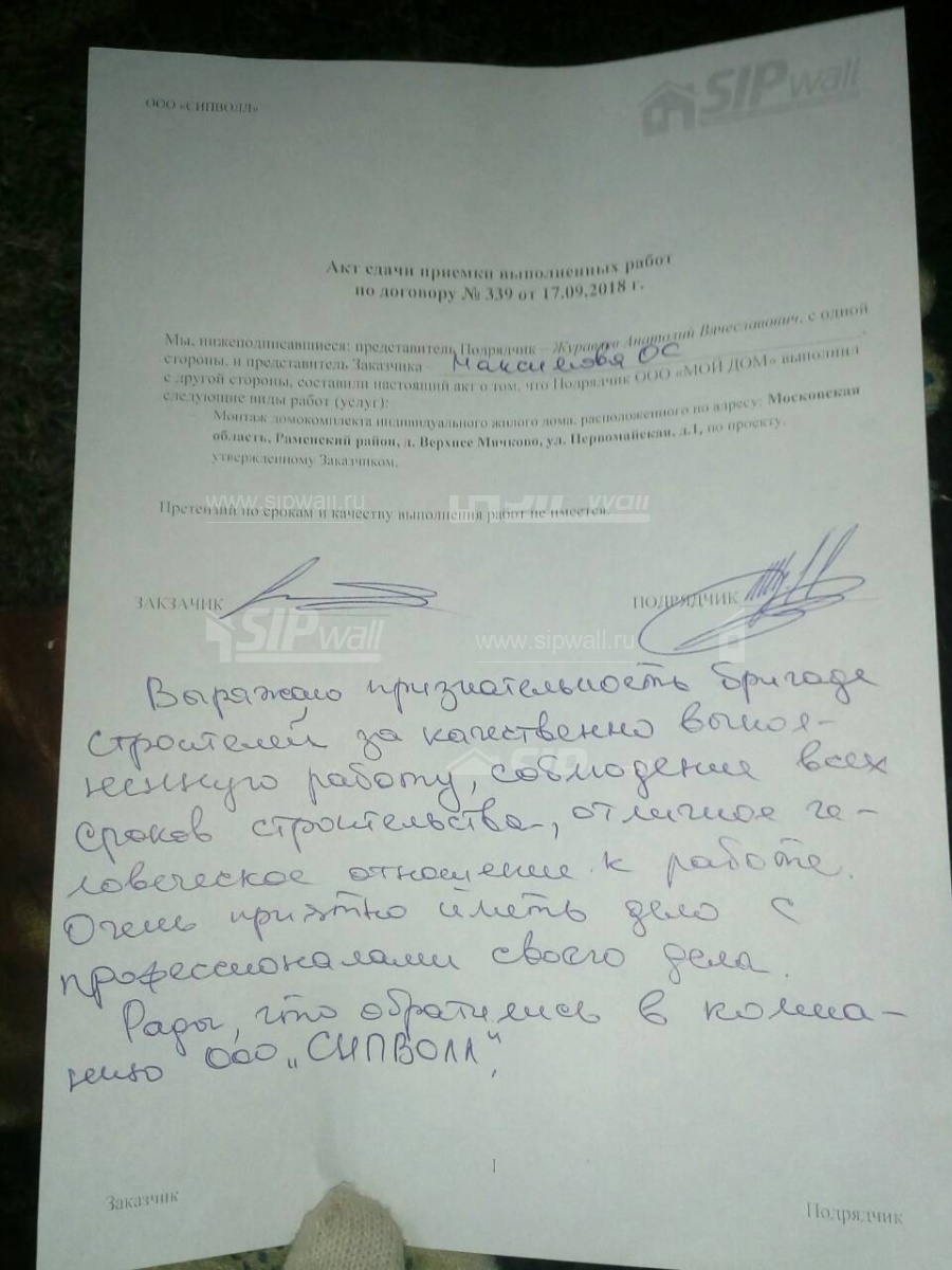 Выражаю признательность бригаде строителей за качественно выполненную работу, соблюдения всех сроков строительства, отличное человеческое отношение к работе.